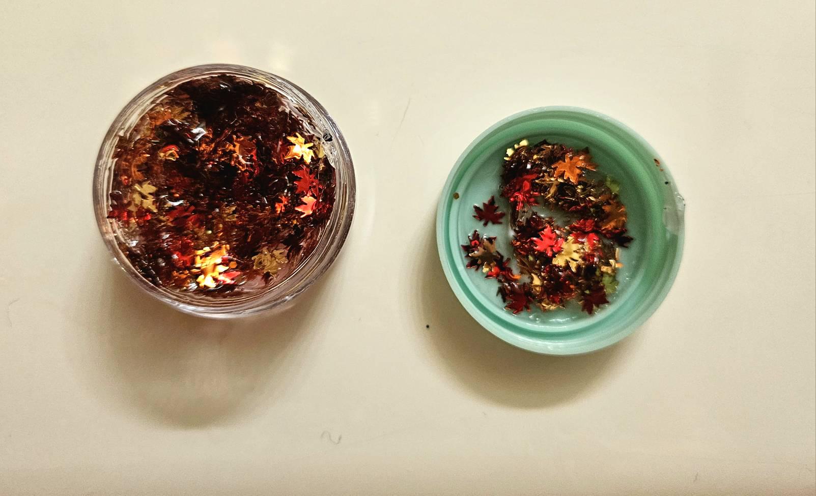 It is not uncommon for certian glitters/clay slices to bleed, and tint the gel. They are still able to be used.